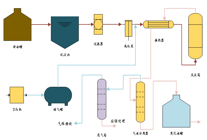 (3)氧化速率快:CWAO處理廢水時停留時間在30-150分鐘內,與生物法相比停留時間大大降低,設備緊湊,占地面積小;